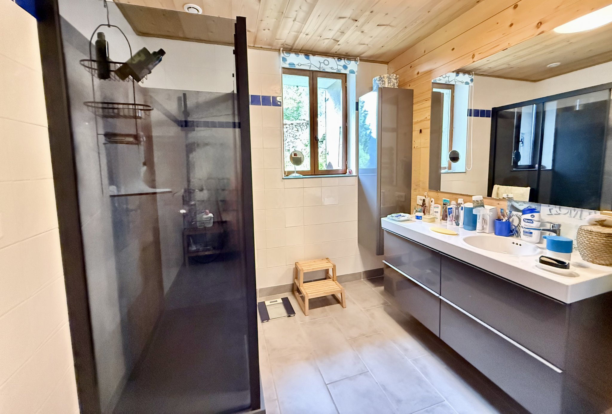 IMPLANTÉE AU COEUR DE 3000 M2 DE TERRAIN, VOUS PROFITEREZ AU NIVEAU PRINCIPAL D'UNE SPACIEUSE CUISINE INDÉPENDANTE, UN VASTE SÉJOUR AVEC POÊLE À BOIS, UNE CHAMBRE, UN DRESSING, UNE SALLE DE BAINS AVEC UN ESPACE BUANDERIE, UN WC.